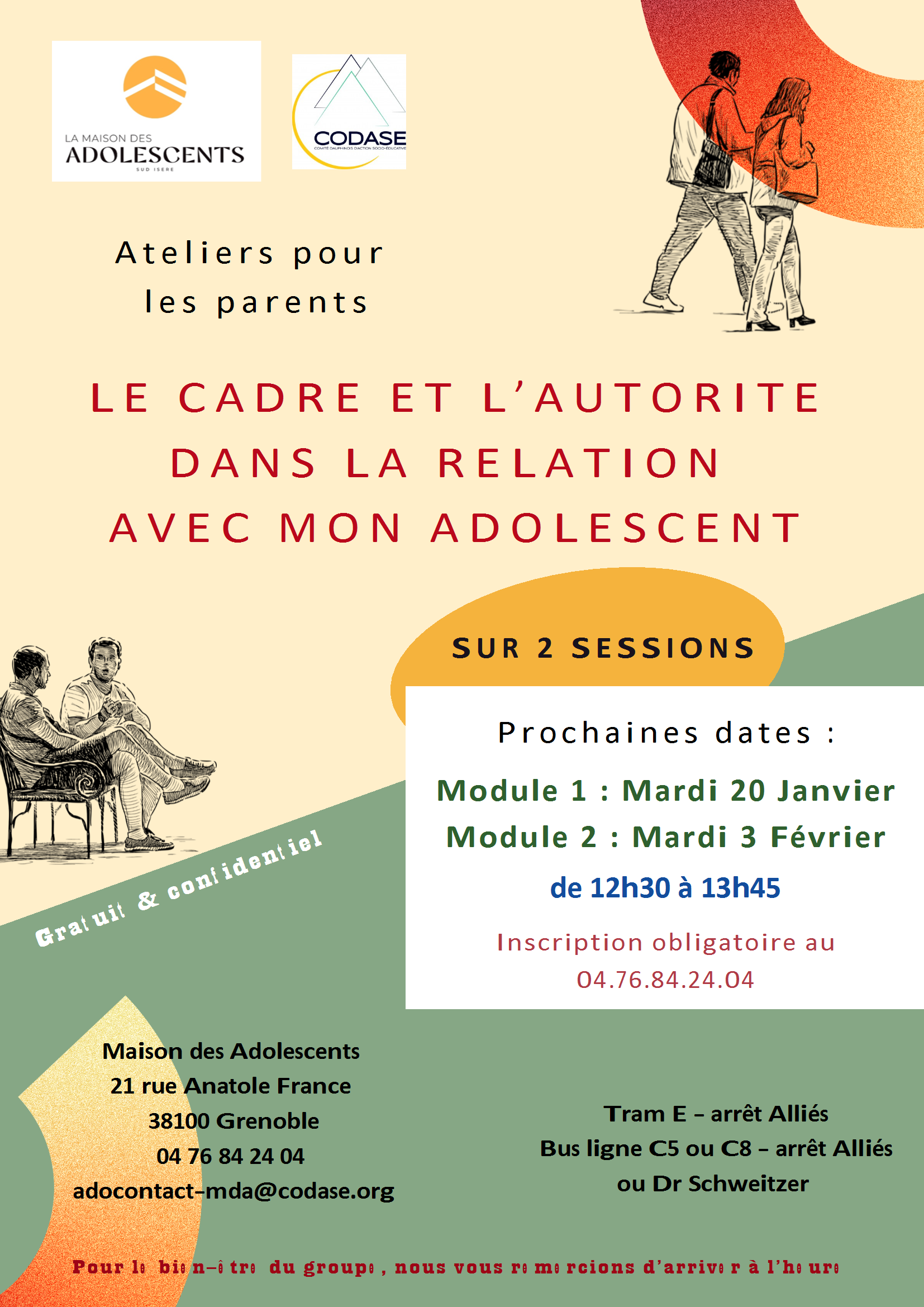 La Maison des Adolescents de Grenoble propose un nouvel atelier gratuit et confidentiel pour les parents d'adolescents sur 2 sessions.