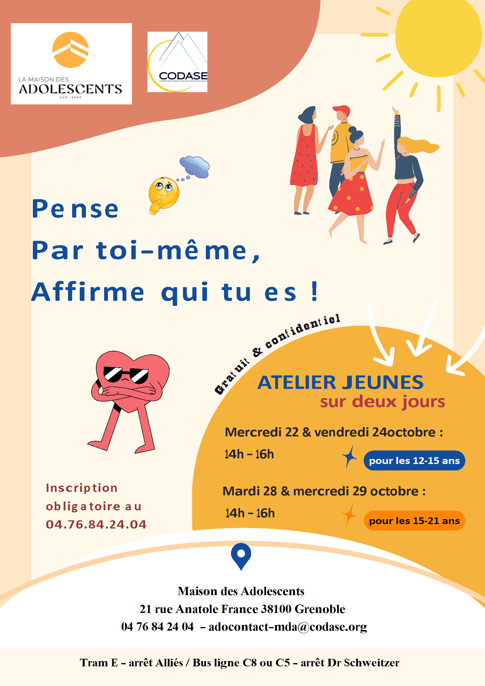 La Maison des Adolescents de Grenoble propose deux ateliers participatifs pendant les vacances de Toussaint sur le thème :