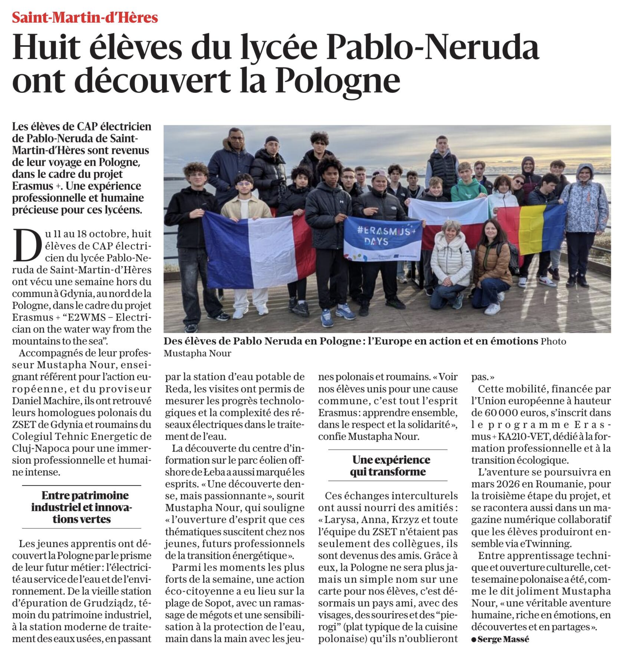 Article du Dauphiné Libéré N°4 sur le projet ERASMUS+ E2WMS - 25/10/2025